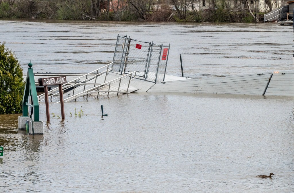 Further downstream, near where the Cobbosseecontee flows into the Kennebec, the Maine Department of Transportation closed both the pedestrian and vehicle bridges crossing Maine Avenue on Tuesday because of the high water levels.