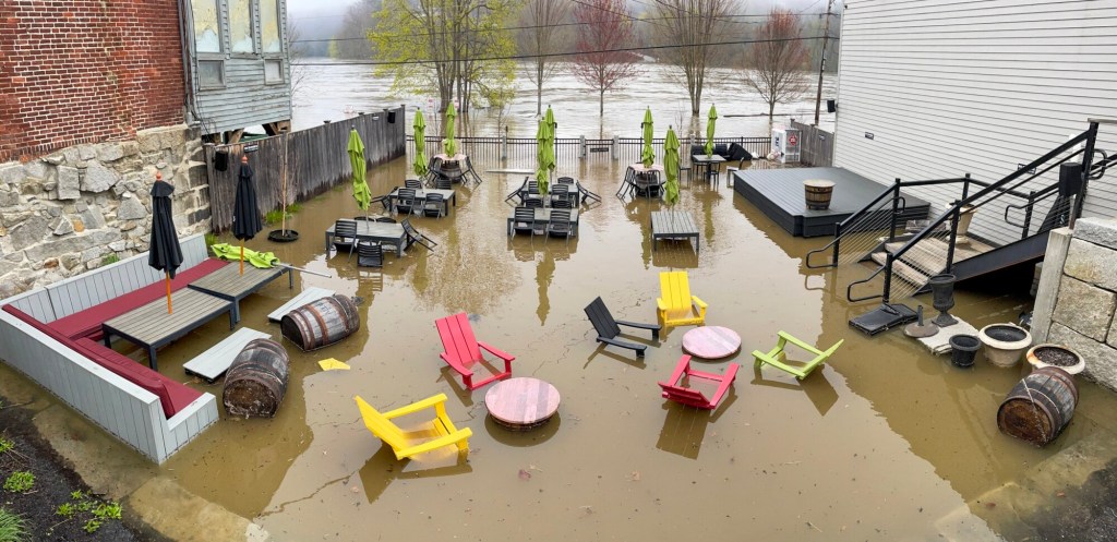The worst flooding in New England, according to a river forecast by the National Weather Service, was in Hallowell as the Kennebec River pushed over its banks and affected several shops and restaurants such as The Quarry Tap Room.