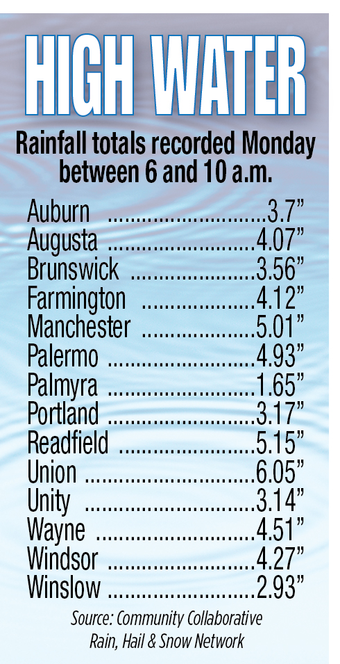 The rainstorm that began Sunday and continued into Monday dumped 5 inches of rain across parts of central Maine, even breaking a 1963 rainfall record in Augusta.