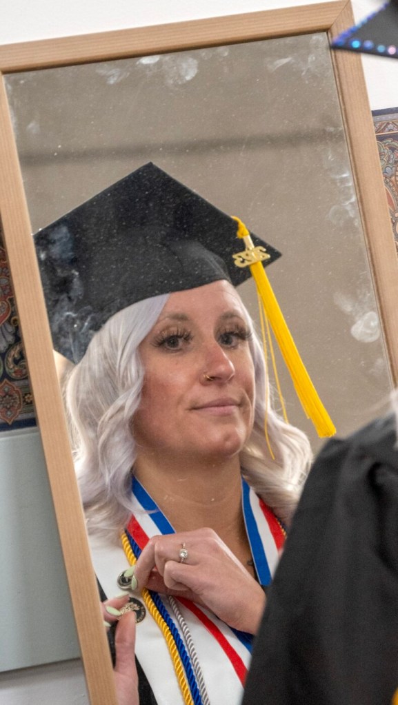 Durand and her mother, Tina Durand, doted over Scarlett on the eve of Mother’s Day while waiting for the pomp and circumstance to begin. By the end, she would be celebrating graduation with a certificate in phlebotomy in hand. And with it, Durand hopes to secure a job, with health insurance, at a doctor’s office close to their Freedom home. It’s a celebration she didn’t want to do without her daughter.