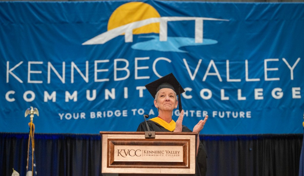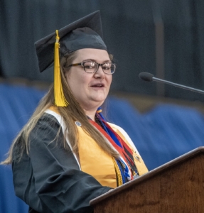 Aubrey Slater of Waterville, the community college’s student of the year who graduated with an associate in science degree in nursing, was one of the graduation speakers. She said community college students are some of the most resilient people there are, having “dealt with the constant battering of life” to overcome their struggles and graduate.