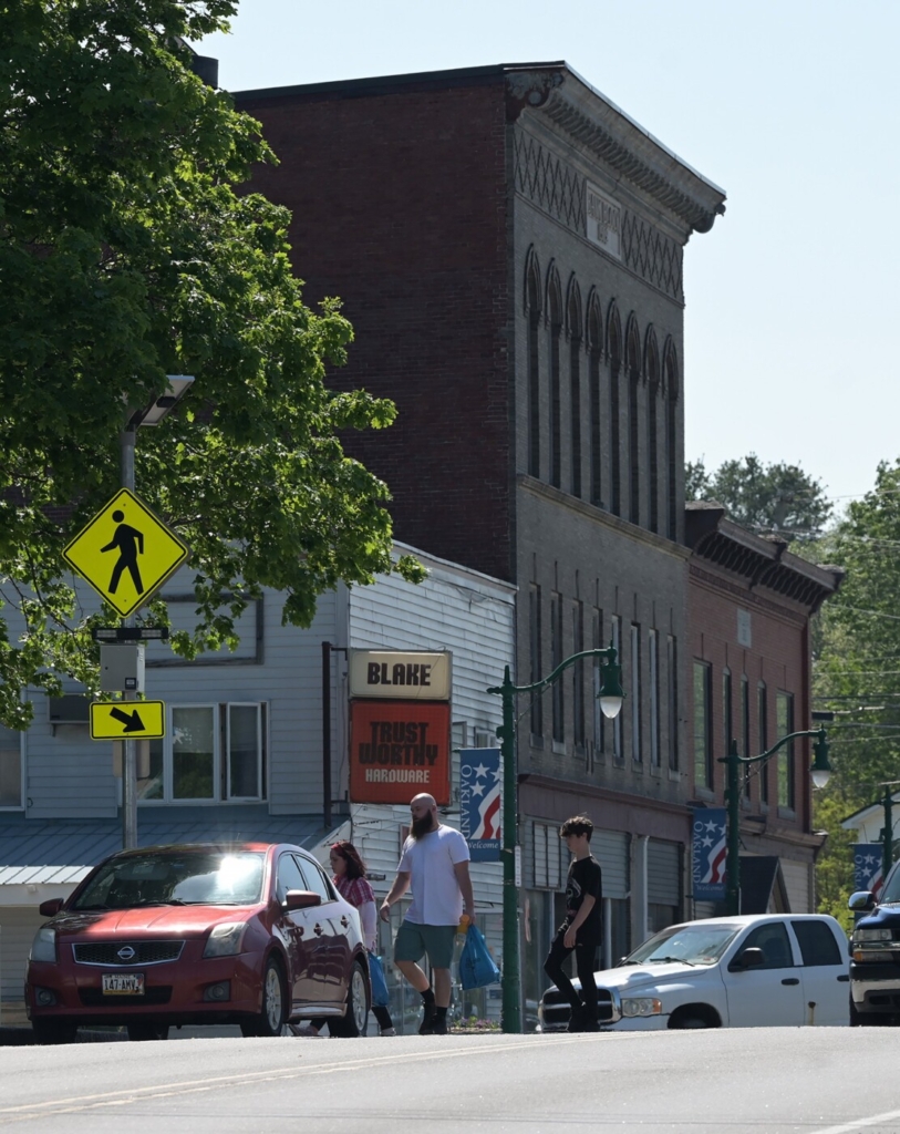 People walk Wednesday along Main Street in downtown Oakland. The state has approved a 30-year municipal tax financing district for the town that officials hope will lure businesses and provide a boost to the downtown area. Rich Abrahamson/Morning Sentinel
