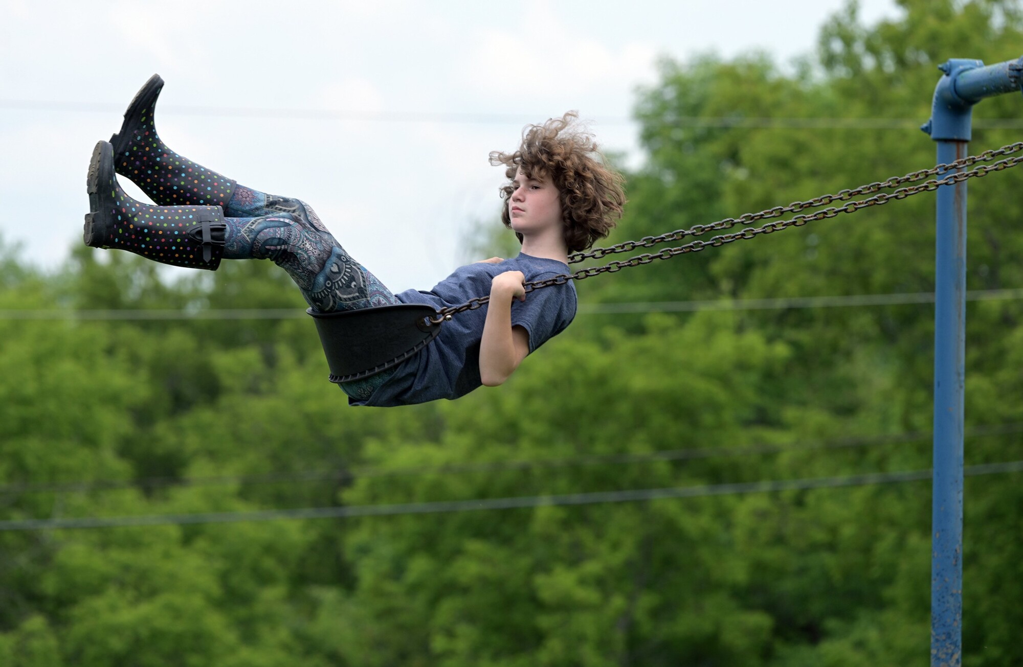 Elizabeth Rowe, 12, of Farmingdale soars upward this week while swinging with her mother, Laurel, at a park in Winslow. Rich Abrahamson/Morning Sentinel