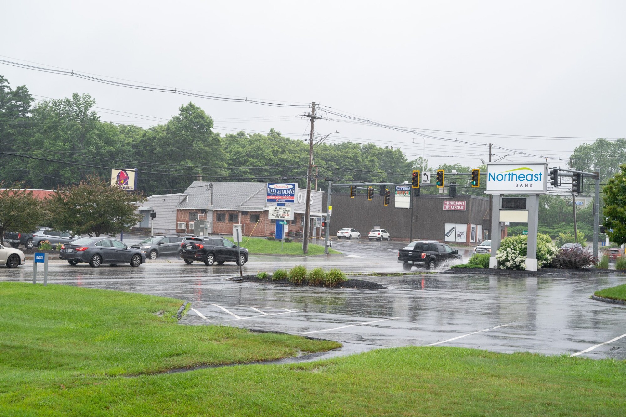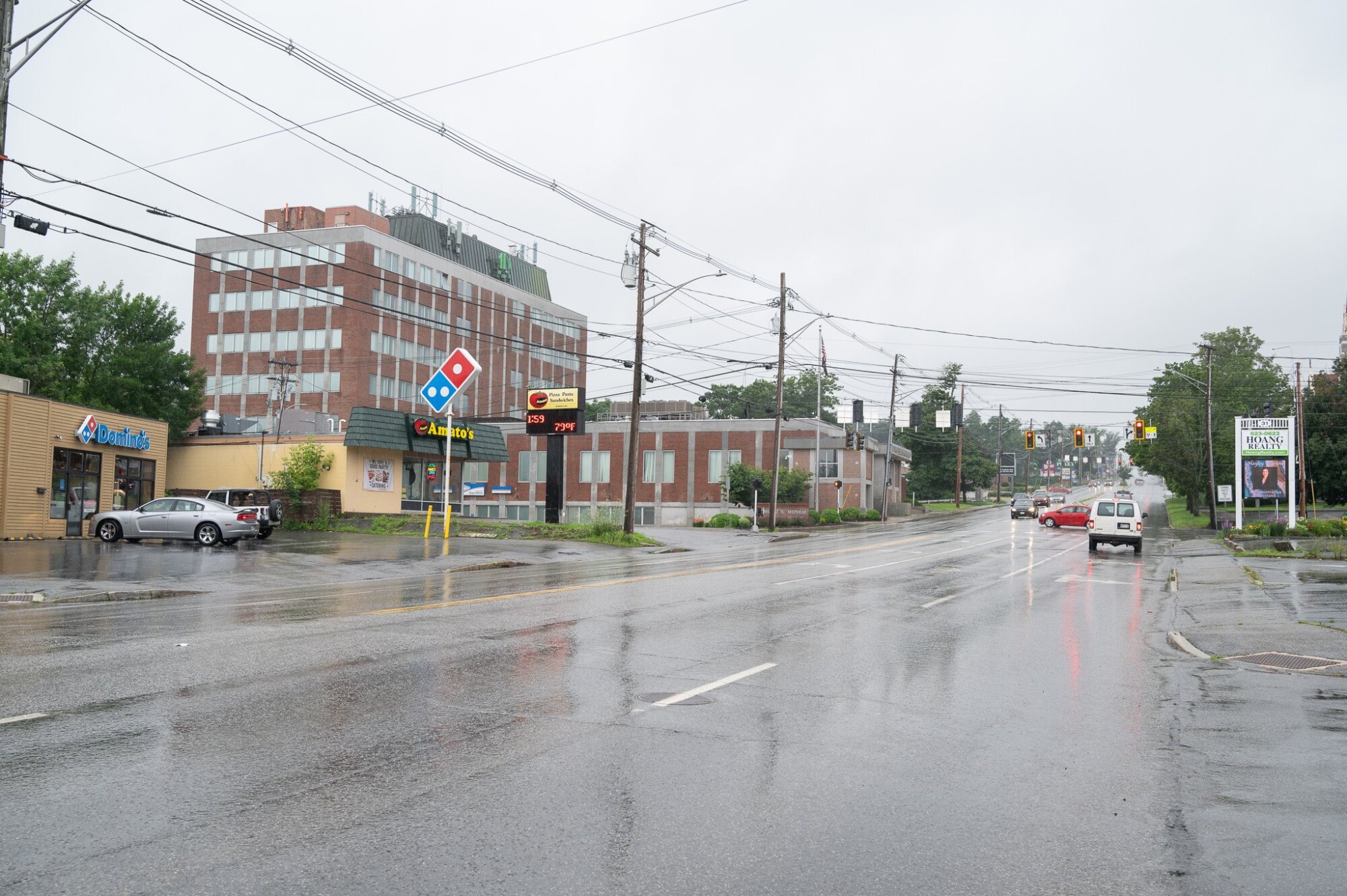 The city of Augusta is considering whether to apply for grant funding of up to $30 million, most of it federal money through a transportation initiative meant to bring “transformative” change to communities, to make improvements to Western Avenue. Above, a rain-soaked Western Avenue on Sunday. Ashley Allen/Kennebec Journal