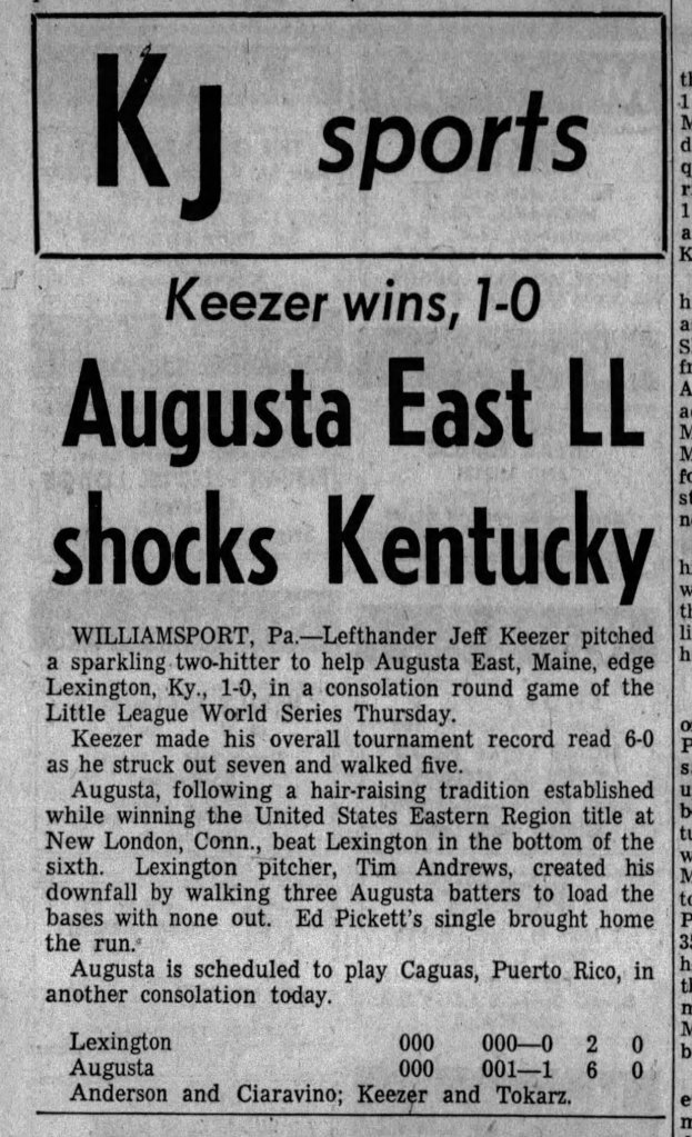 Augusta East was one of eight teams to play in the 1971 Little League World Series. It dropped a 5-0 decision to Madrid in the opening round, but pulled a surprise 1-0 win over Lexington, Kentucky in the consolation round. Augusta eventually lost to Cagaus, Puerto Rico 4-0 to conclude its trip. Tainan City, Taiwan won the World Series title.