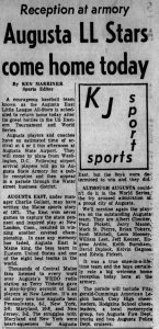 The 1971 Augusta Little League team reached the Little League World Series in Williamsport, Pa. In this clipping from the Kennebec Journal, the team was set for a warm homecoming after the tournament concluded.