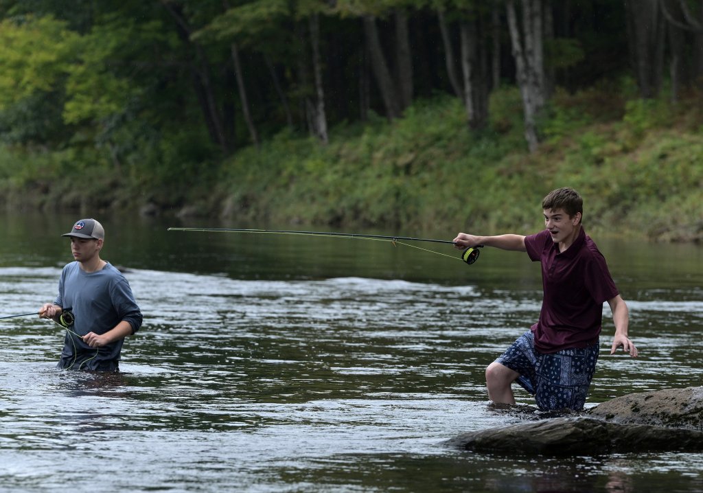 One of the 11 students taking the fly-fishing course this fall is Izaiah Cook, who signed up because he grew up fishing, often going up to Jackman to catch brook trout with his older brother. The sophomore said this summer he tried ocean fishing and now wants to learn fly-fishing.