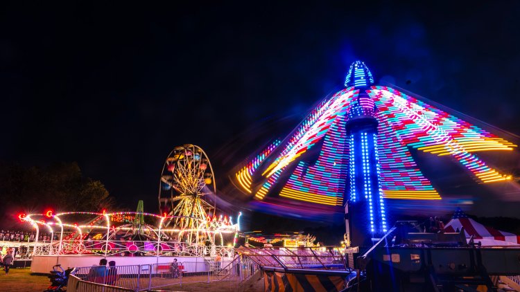 The glow of carnival rides is vivid Thursday against the night sky over Mill Park in Augusta. Joe Phelan/Kennebec Journal