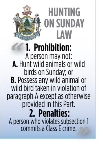 Maine and Massachusetts are the only states that ban hunting on Sunday. The practice was banned in Maine in 1883. Maine, also, was the first state in the nation to pass a right to food amendment.