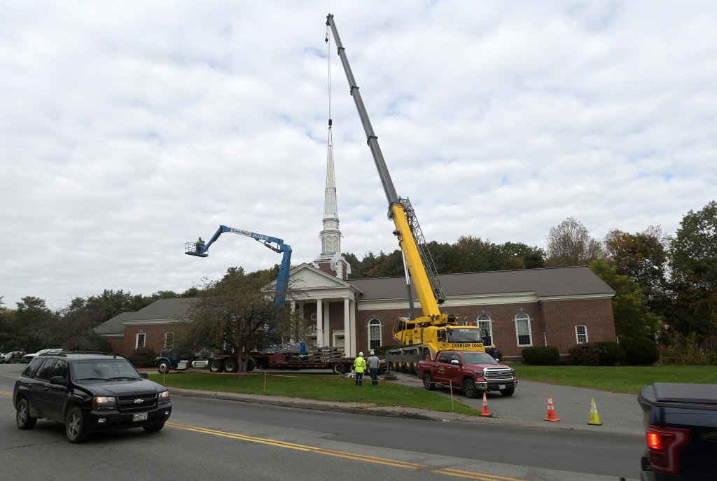 The 57-foot steeple, which housed a Revere bell, was part of the First Congregational United Church of Christ at 7 Eustis Parkway, according to Caitlin Walker, the museum’s programs and community relations coordinator.