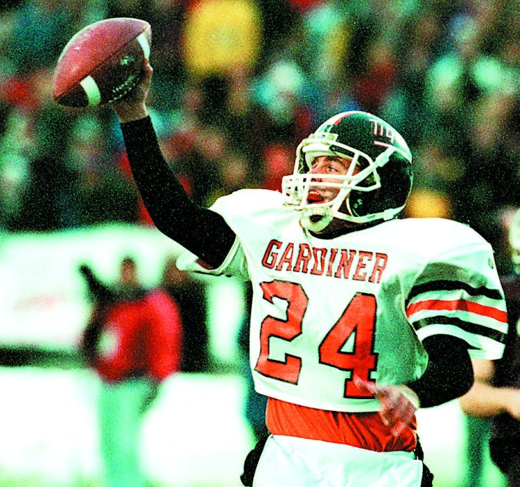 Gardiner’s Nate Sergent celebrates a touchdown during a Nov. 24, 1997 game. Kennebec Journal file photo