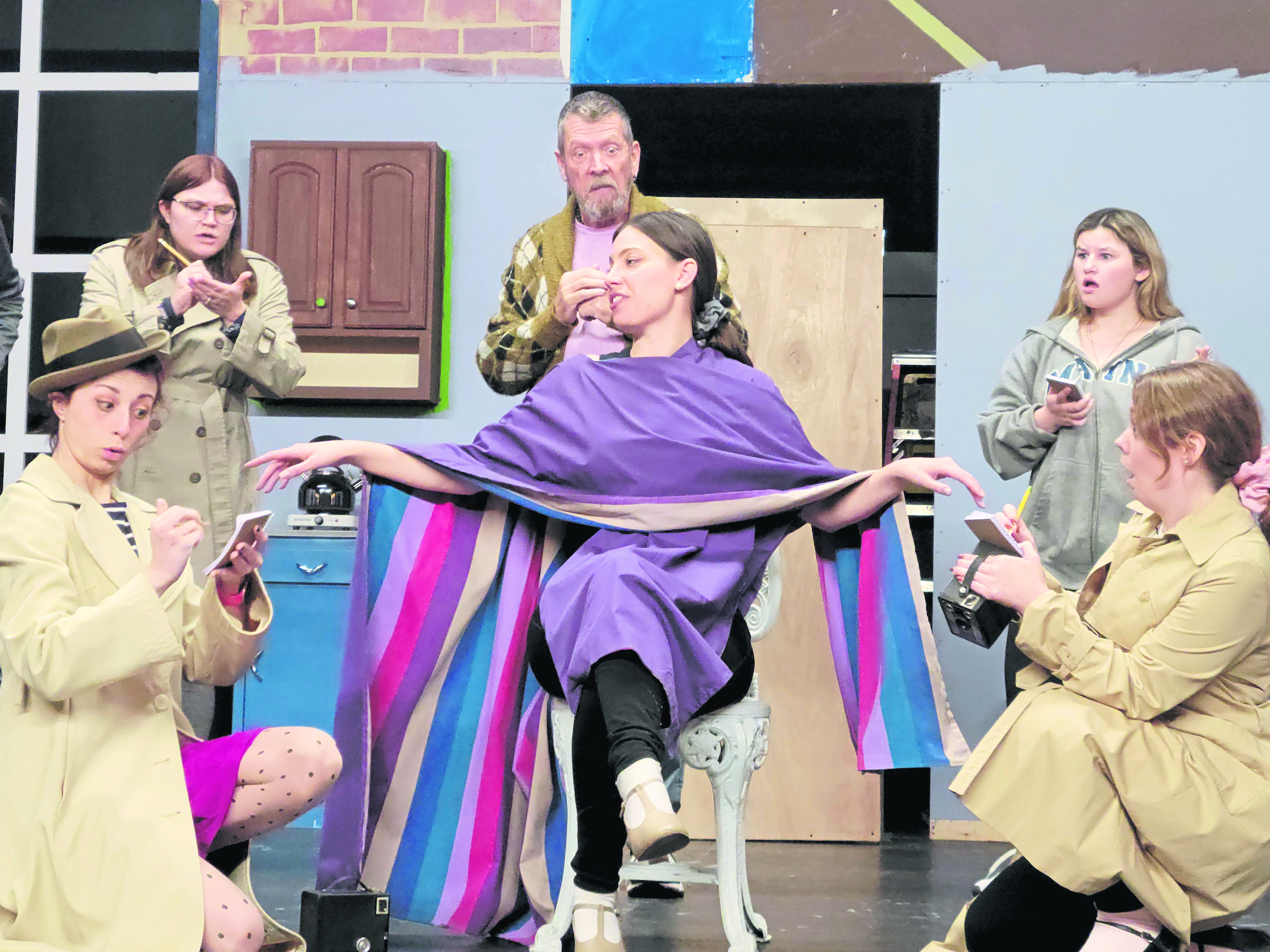 From left cast members Leslie Reed, Casey Waters, Jonathan Carr, Kathryn Kellogg, Ansley Watson, and Karianna Merrill rehearse one of the big “Drowsy” song numbers. Submitted photo