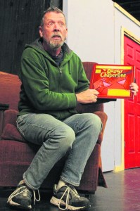 Jonathan Carr as “Man in Chair” shows the audience the cover of one of his favorite cast albums – “The Drowsy Chaperone.” Submitted photo