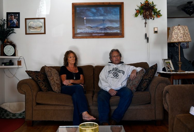 Mark and Laurie McKenna in their Rumford home on Oct. 2. They lost their son Drew in what they say was an accidental shooting just before Christmas and their son Shay in a police shooting on Sept. 13. Shawn Patrick Ouellette/Staff Photographer