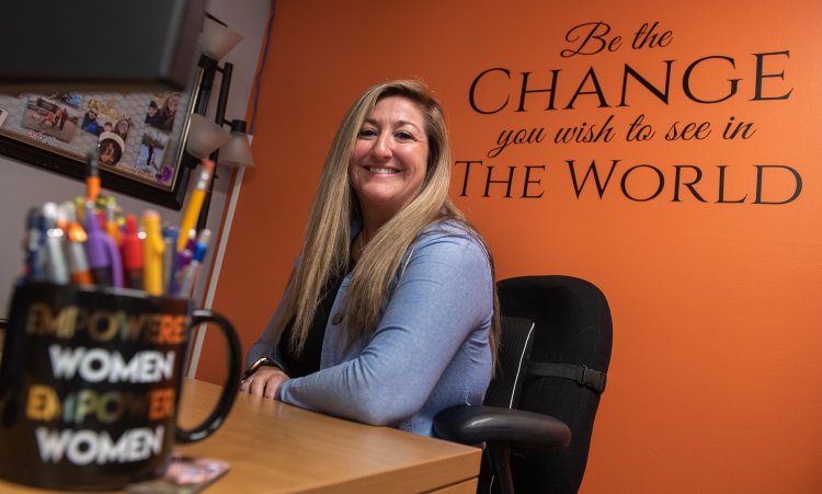 Melanie LaMore Gagnon, CEO of YWCA Central Maine, sits at her desk recently in her office at the East Avenue facility. Russ Dillingham/Sun Journal