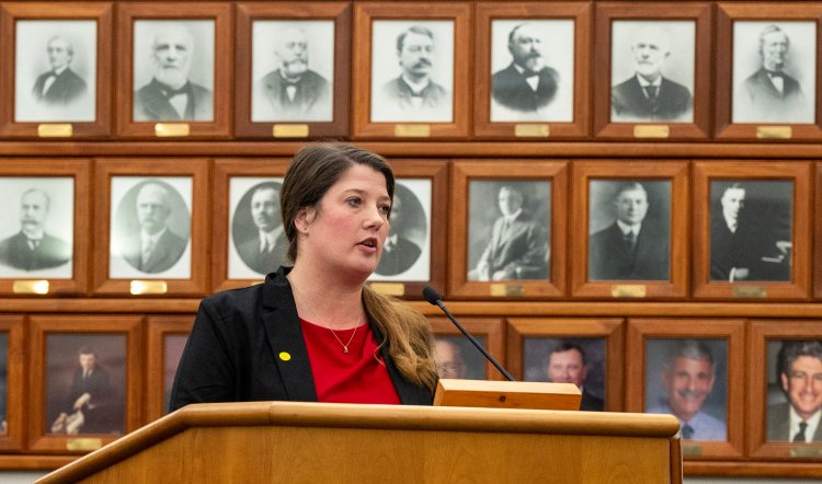 Bridget Barrows, owner of Tenant Solutions LLC, testifies Tuesday during a meeting of the Augusta Rental Inspection Ordinance Ad Hoc Advisory Committee at Augusta City Center. There was a standing room-only crowd for the hearing. Joe Phelan/Kennebec Journal