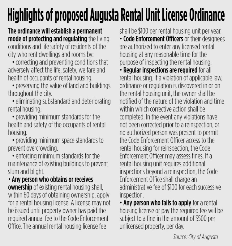 AUGUSTA — Landlords and others attacked a proposed rental housing inspection ordinance they said would increase rents for tenants, reduce the amount of housing available at a time when it is needed most and violate their property rights and their tenants’ privacy rights.