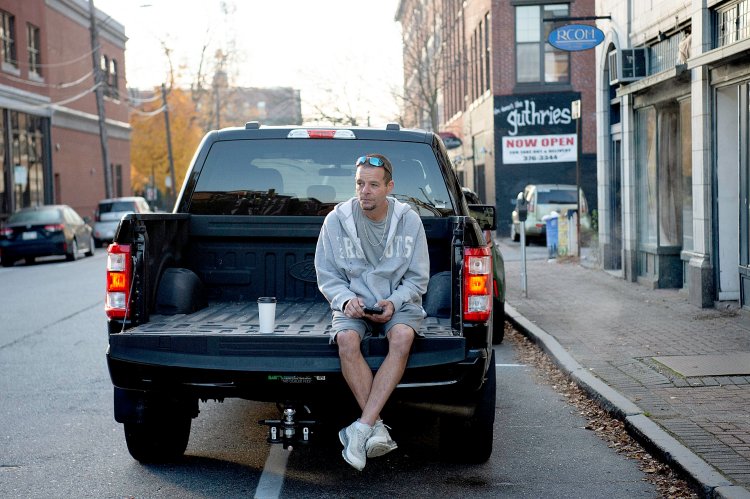 Wayne Rucker, of Lewiston, waits to hear news from friends at the hospital Friday. Rucker’s friend Justin Karcher survived Wednesday’s mass shootings but remained in critical condition as of Sunday. Daryn Slover/Sun Journal