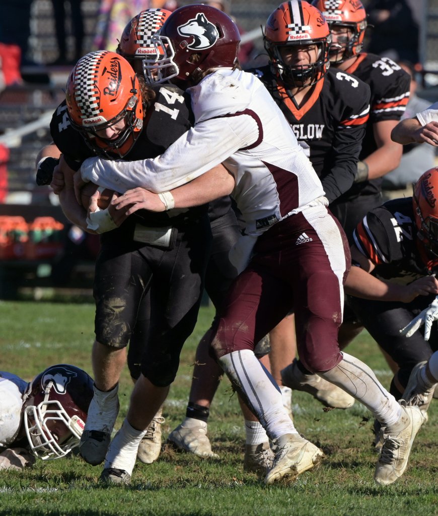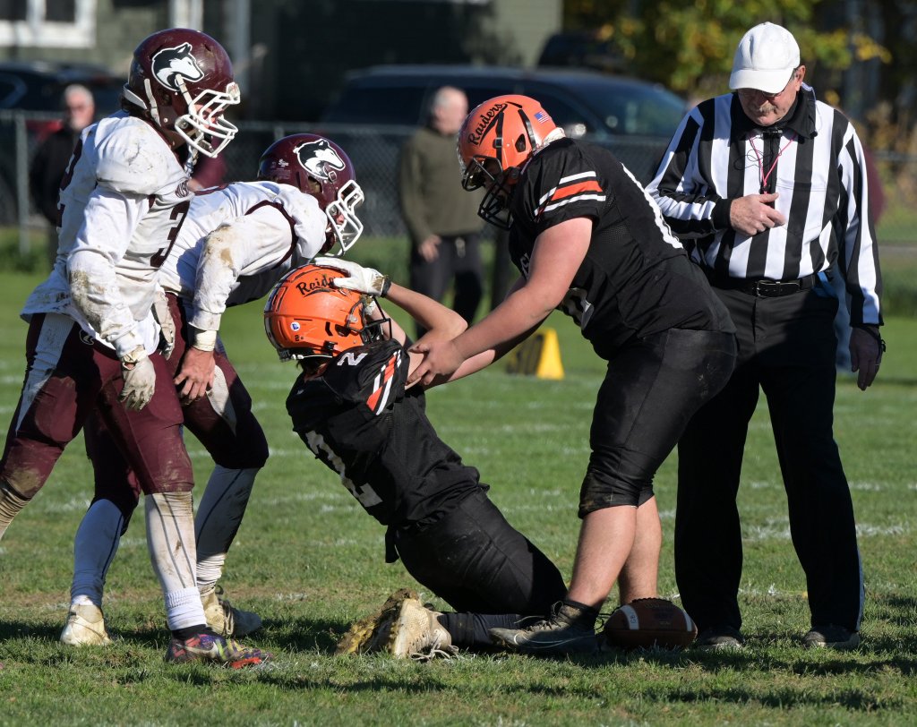 Led by the rushing of senior Matt Quirion (238 yards) and sophomore Liem Fortin (137 yards), the No. 4 Black Raiders rolled to a 55-14 win over No. 5 Maine Central Institute in a Class D North quarterfinal at Poulin Field on Tuesday afternoon. Winslow (4-5) will meet No. 1 Foxcroft Academy (8-0) in the semifinals. The Black Raiders hosted the Ponies on Oct. 21, falling 35-14.