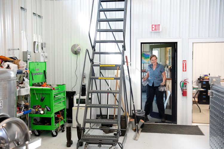 Winemaker Lindsay Benson grabs a few glasses from the tasting room at WillowsAwake Winery in Leeds to sample this year’s harvest. Daryn Slover/Sun Journal