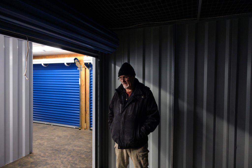 Arthur Barnard inside of his son Arthur Strout’s storage unit after Barnard and some of his family members cleaned it out Wednesday. Barnard’s son was killed in the Oct. 25 shooting at Schemengees Bar & Grille. Barnard said he was at the storage unit a few days earlier but couldn’t bring himself to open the door. Brianna Soukup/Staff Photographer