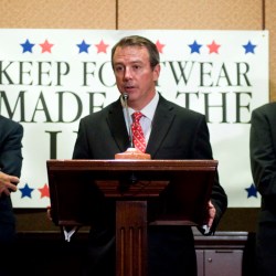 WASHINGTON — Members of Congress joined workers from New Balance factories in Maine and Massachusetts on Wednesday to urge the Obama administration to preserve tariffs deemed critical to the few athletic shoe manufacturers left in the U.S.