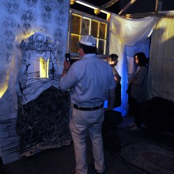 The historic downtown theater, unused as a theater since it closed in 1969, showed a film Friday night as part of the opening of a multimedia exhibit.