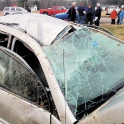 WINSLOW — Two adults and three youths were injured Monday when the SUV they were traveling in at a high rate of speed on Garland Road rolled over about three times, resting in a pasture, according to police.
