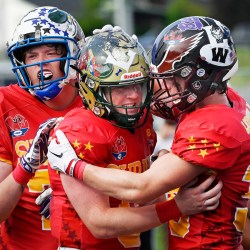 Oxford Hills QB Eli Soehren throws three touchdown passes and runs for a score as the East snaps a three-game losing streak in the all-star football game.