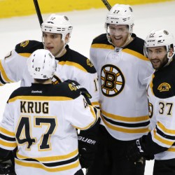 Patrice Bergeron gets three assists in Boston's 5-3 win, its third victory in the last four games.