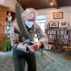 Maine Forest Service entomologist Colleen Teerling gave a presentation Saturday to a small crowd at Gardiner Public Library on how to use a pole pruner and saw to cut browntail moth nests out of trees.