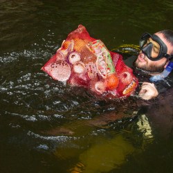 A group of four friends, three of them certified scuba divers, have made it their mission this summer to haul trash out of the Saco River.