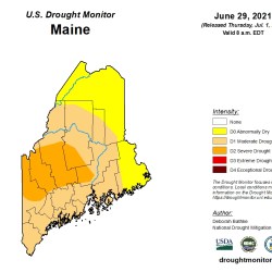 A portion of western Maine and northern New Hampshire remain in severe drought, and moderate drought conditions persist across additional parts of those states and Vermont.