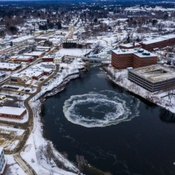 While not quite the spinning wonder that went viral in 2019, this ice disk is taking shape in the Presumpscot River near downtown Westbrook.