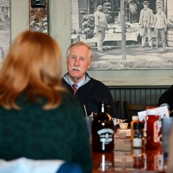 Independent U.S. Sen. Angus King, whose first professional job was in Skowhegan, was in town Monday to hear how federal money is being invested in projects, including the River Park and redeveloping the former Solon Manufacturing Co. mill.
