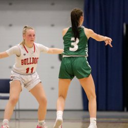 River Hawks hold Eagles without a basket for nearly 20 minutes in 52-15 win.