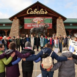 Faith groups meet outside Cabela’s in Scarborough to protest semi-automatic rifle sales