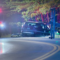 The crash snapped a utility pole and knocked out power to roughly 800 customers, authorities said.