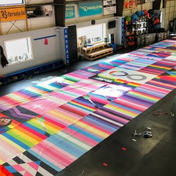 Bishop McKechnie, who owns Merkaba Sol with his husband, David Hopkins, made a more than quarter-mile-long Pride banner.