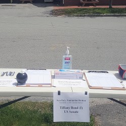 U.S. Senate hopeful Tiffany Bond has 2,500 of the 4,000 voter signatures she needs to get on the ballot, but securing the rest in a time of social distancing will be tricky.
