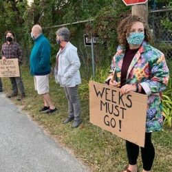 Demonstrators say ‘Weeks Must Go!’ over Waterville Planning Board member’s alleged racist comments